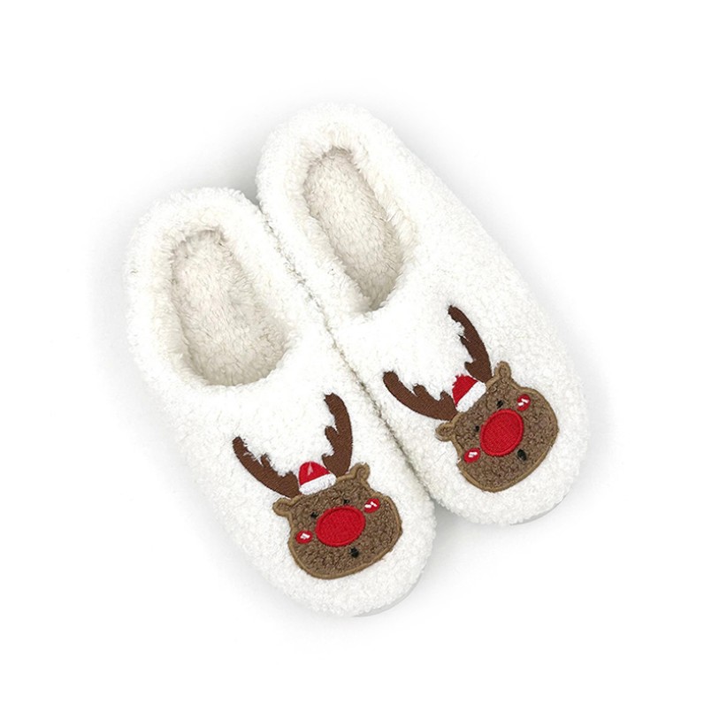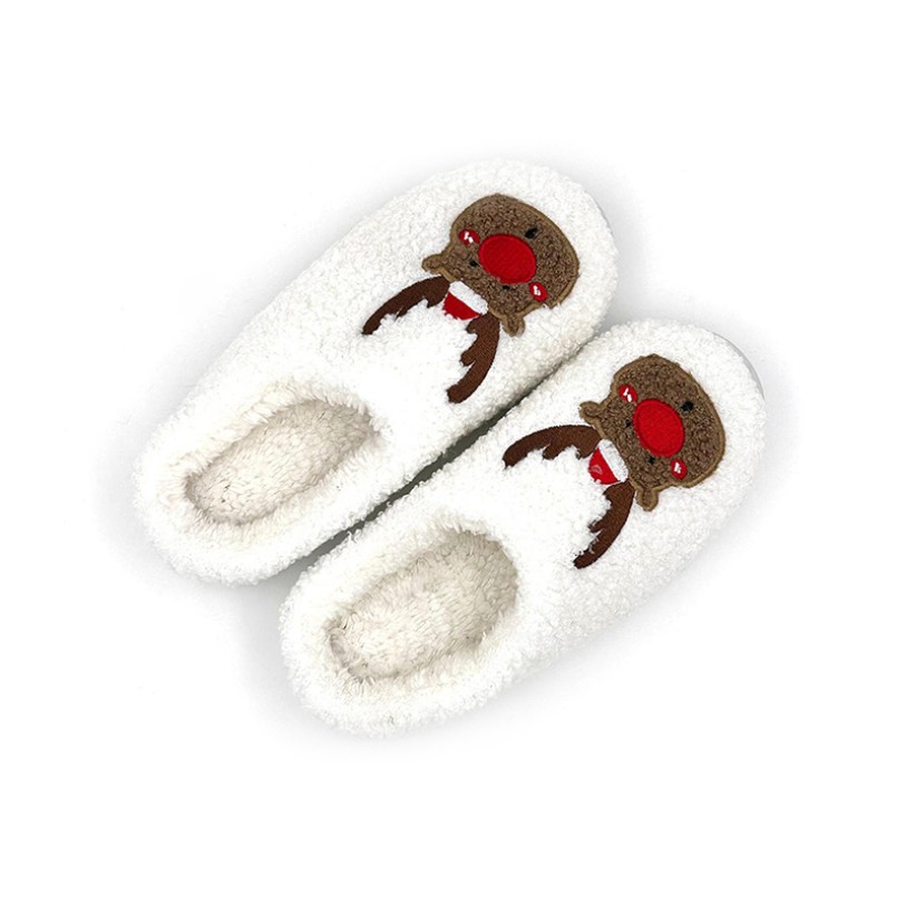 These slippers feature a Christmas reindeer theme, exuding a festive atmosphere and perfect for lounging at home or as a holiday gift. The closed toe design wraps around the feet, enhancing warmth and comfort. The upper, lining, and midsole are all made of soft wool, offering a delicate touch, fluffy warmth, and comfortable support. A memory foam insole cushions the feet, making walking effortless and fatigue-free. The outsole is made of lightweight TPR material, which is slip-resistant and durable, providing stability even on slippery surfaces. The overall design balances comfort, warmth, and festive fun, making it an ideal choice for staying warm at home and enjoying the holiday spirit in winter.
