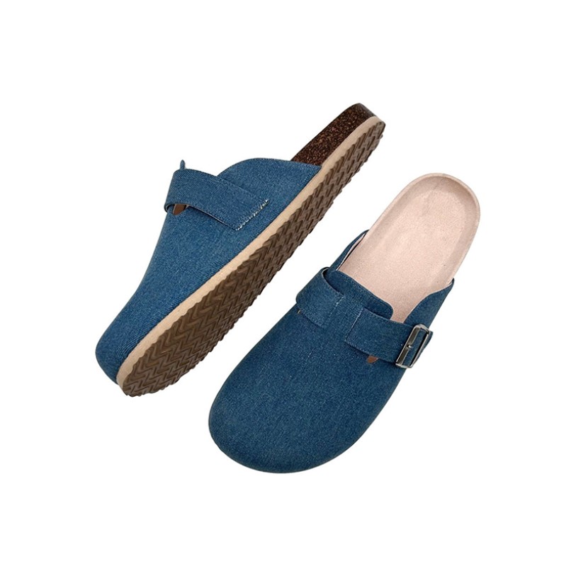 These shoes feature a closed toe box for easy on and off. The upper is made of lightweight and breathable canvas, with an adjustable buckle for a comfortable fit and improved walking stability. The microfiber lining is soft and comfortable, enhancing the wearing experience. The cork footbed provides natural arch support, helping to relieve foot pressure and maintain comfort even during long walks. The EVA and cork composite outsole offers slip resistance, cushioning, and durability, ensuring safety and longevity.