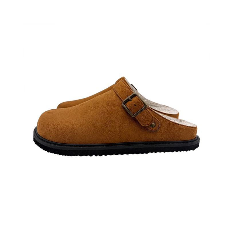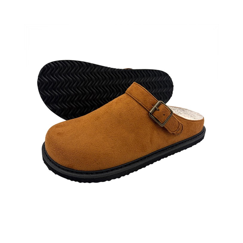 This shoe features a classic mule silhouette with a rear strap design, ensuring a secure fit that prevents slipping off the heel. It combines the convenience of a slipper with the supportive feel of a shoe. The midsole incorporates memory foam construction that conforms to the foot's shape, providing effective cushioning to reduce pressure with every step. An integrated cork insole with arch support helps distribute pressure across the sole, enhancing comfort during extended wear. The slip-resistant outsole makes these shoes suitable for everyday home use or short outings. Lightweight and flexible, they meet daily comfort and practicality needs.