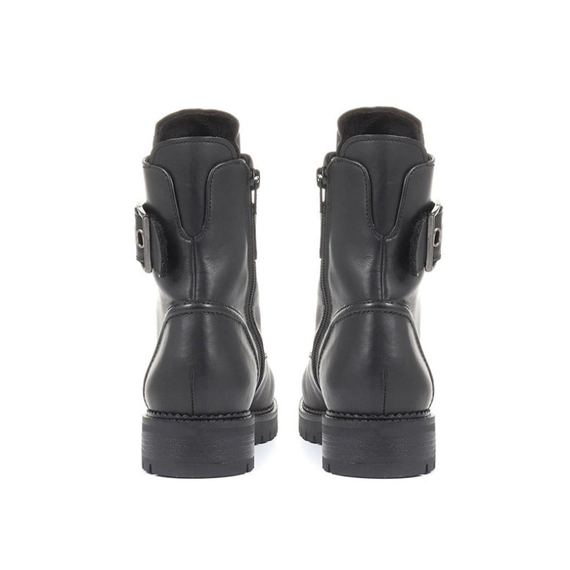 This shoe features a premium full-grain leather upper that feels smooth and soft to the touch while offering excellent waterproof performance to effectively withstand cold, damp winter weather. The boot's interior is lined with thickened cashmere for superior warmth, making it ideal for cold seasons. The side zipper opening allows for easy on-and-off wear while adding a touch of modern style. The boot silhouette hugs the ankle's natural curve, balancing comfort with support. Perfect for daily outings, commuting, and casual occasions. The rubber outsole is durable and slip-resistant, ensuring safe and stable walking. The EVA midsole provides excellent cushioning, reducing fatigue during extended wear. The overall style is simple and elegant, blending fashion-forward design with practical functionality.
