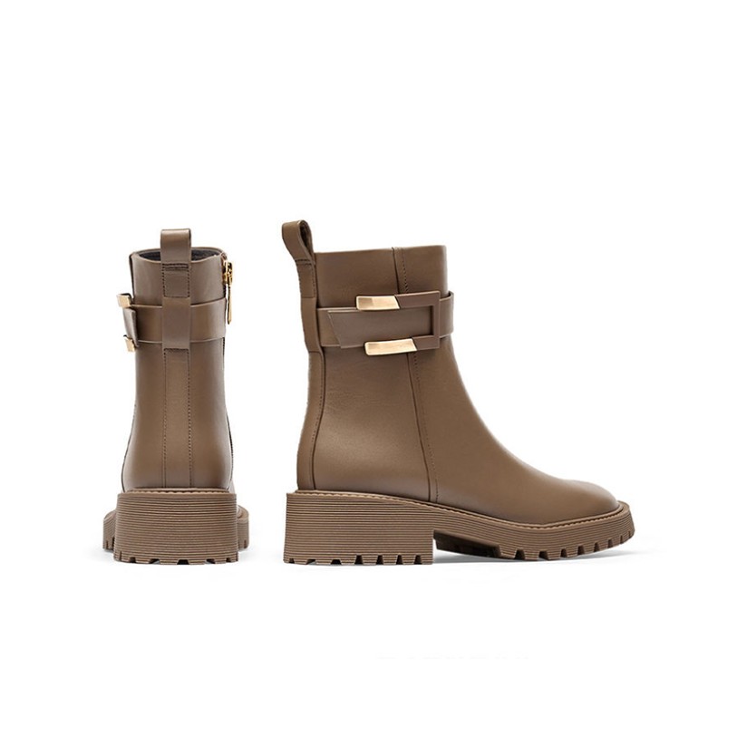 This shoe features a premium genuine leather upper that feels soft yet durable, paired with a minimalist solid-color design that embodies autumn-winter fashion. The ankle-high boot shaft is designed to hug the foot shape, facilitating easy daily walking and movement. The zipper opening allows for quick on/off while enhancing overall stability. The upper offers excellent breathability and odor resistance, making it suitable for extended wear. The rubber outsole delivers reliable slip resistance and durability, ensuring both comfort and safety. The clean, understated silhouette makes these boots versatile for commuting, casual outings, and various urban styling scenarios.