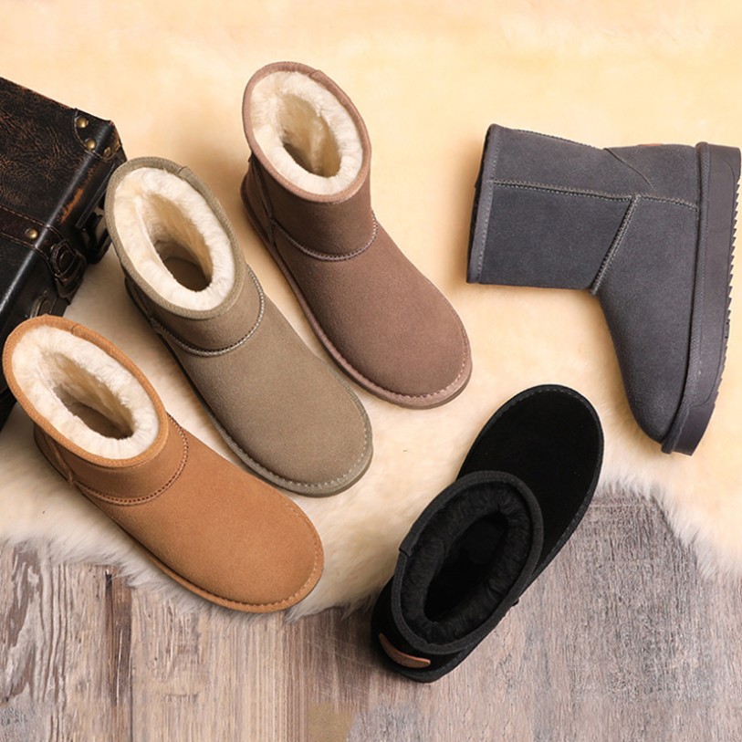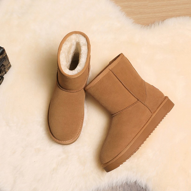 This shoe features a premium sheepskin and wool upper that feels soft to the touch and offers exceptional warmth, making it ideal for winter outdoor wear. The ultra-long plush lining provides a comfortable fit against the foot, effectively trapping heat for superior insulation. The thick sole design combines a lightweight rubber midsole and outsole, adding 12cm in height while delivering excellent cushioning and slip resistance for stable, secure walking. The ankle-hugging silhouette combines stylish elegance with practical warmth for everyday wear.
