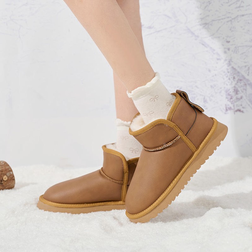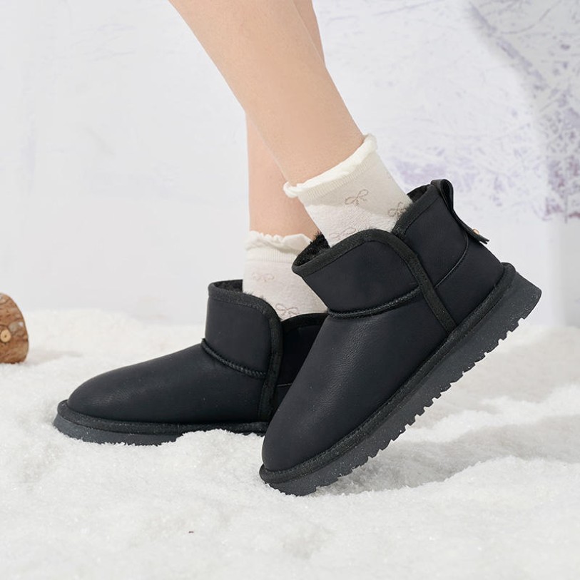 This shoe is designed specifically for urban women, combining fashion with practicality. The upper features ultra-fine synthetic leather, offering a soft texture that is both durable and easy to maintain. The lining is filled with wool and extra-long plush, providing superior warmth to keep feet cozy and comfortable throughout the cold winter. Both the midsole and outsole are crafted from TPR material, offering lightweight durability, excellent cushioning, and slip-resistant traction for stable, secure walking. The ankle-height design features a rounded toe for easy slip-on/off and enhanced flexibility. This overall design balances style and comfort, making it an ideal choice for winter leisure outings and everyday wear.