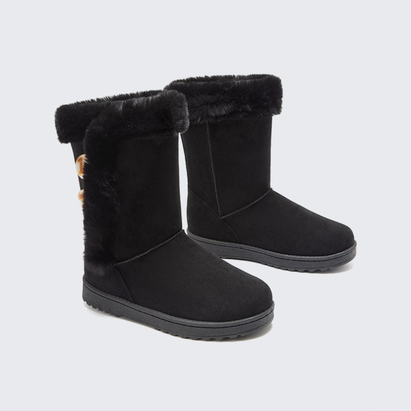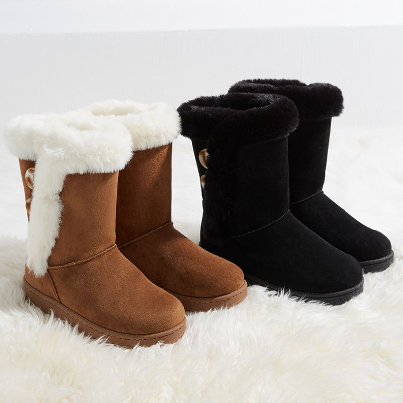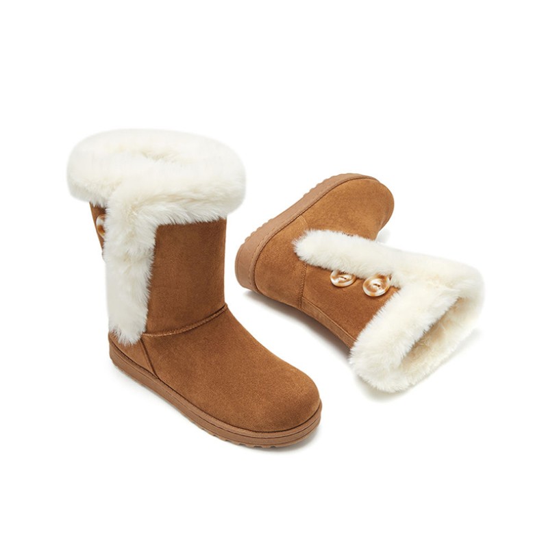 These boots feature a synthetic leather upper paired with a cashmere lining and fur-lined interior, offering softness and warmth ideal for autumn and winter wear. The calf-length design combines slip resistance with comfort, making them perfect for daily outings and casual outfits.