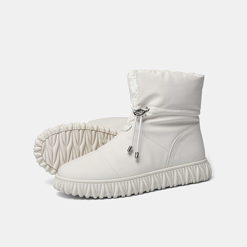 This shoe features a premium genuine leather upper, complemented by a plush and faux suede combination design that offers both durability and a soft feel. The interior is lined with synthetic fur for enhanced warmth, making it ideal for autumn and winter wear. The thick EVA midsole paired with a rubber outsole provides excellent cushioning and slip resistance, ensuring stable and comfortable walking. The rounded toe box provides a comfortable fit, while the calf-high boot shaft balances style and warmth. Ideal for everyday casual wear and short outdoor excursions.