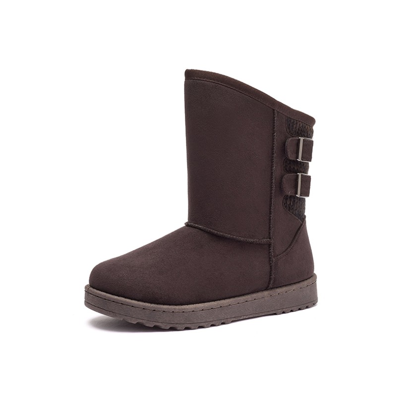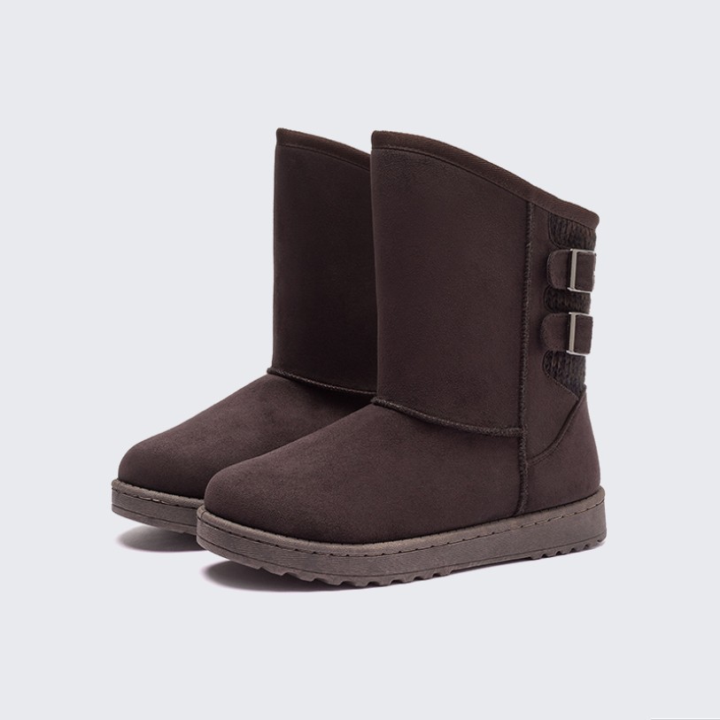 This boot is designed for autumn and winter wear, featuring a calf-high shaft that balances warmth with style. The upper is crafted from premium cashmere, offering soft comfort and a snug fit that enhances overall insulation. The fur lining is plush and thick, effectively trapping heat to keep feet warm and cozy even during extended wear. The rounded toe design enhances comfort and protection. The overall silhouette is sleek and versatile, perfect for daily wear and light outdoor activities.