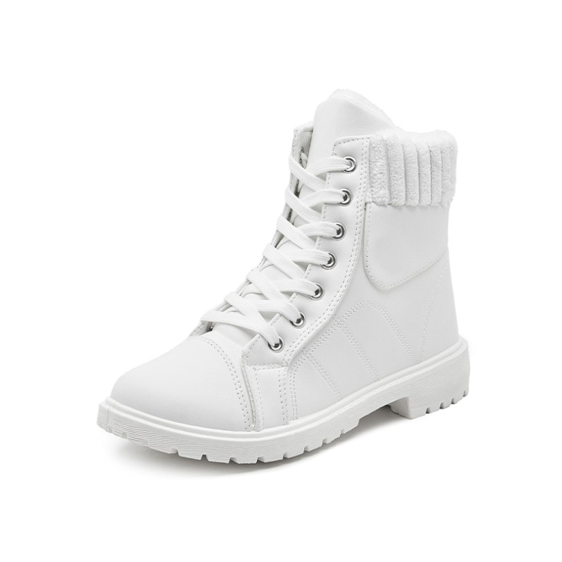 This shoe is specifically designed for winter wear, featuring a mid-calf shaft height for easy daily on-and-off wear. It's suitable for both outdoor adventures and urban casual styling. The upper is crafted from satin fabric, offering a smooth texture and excellent durability. Its solid color design ensures versatile and fashionable pairing. The rounded toe provides excellent coverage, protecting your feet comfortably and securely. The PVC outsole provides slip resistance and durability, enhancing stability while walking. The boot features a zipper closure and lacing system, allowing for adjustable fit while balancing practicality and style.
