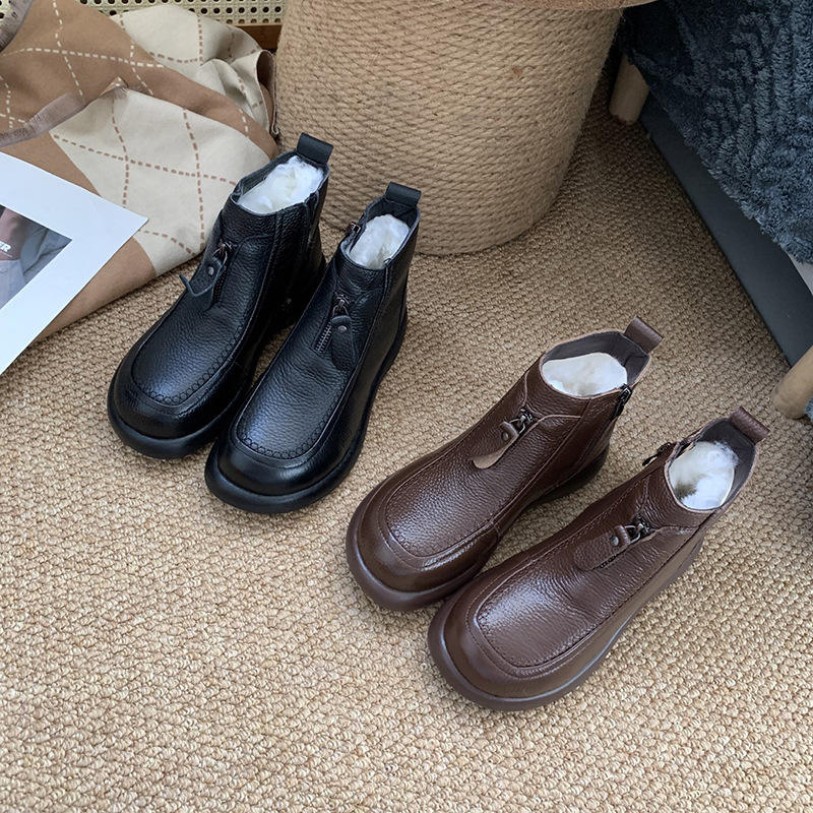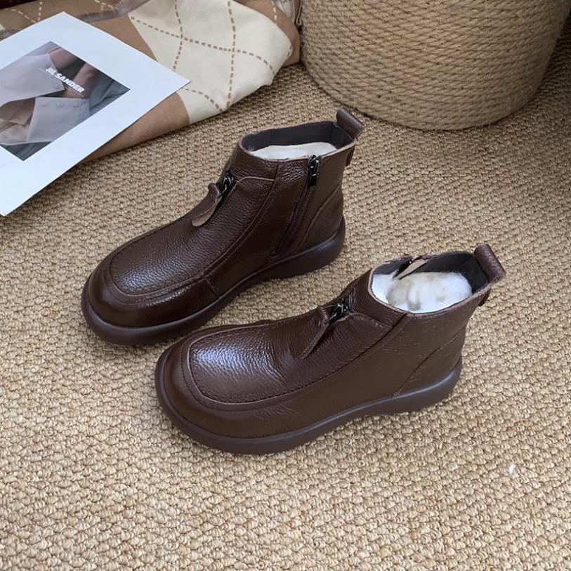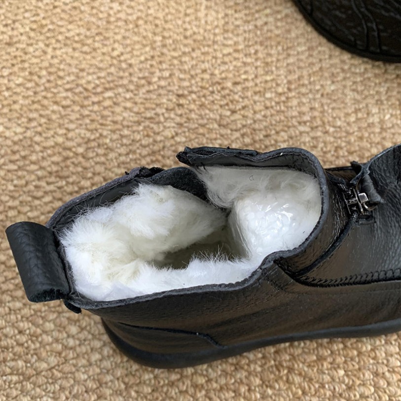 These shoes feature a thickened wool design, offering a soft and warm interior to keep your feet cozy and comfortable during cold winters. The sole is soft and elastic, providing excellent cushioning to reduce walking pressure. They are suitable for daily home wear or light outdoor activities. The short boot design allows for easy on-and-off wear, with a simple and versatile style that pairs well with various winter outfits, combining both fashion and practicality.