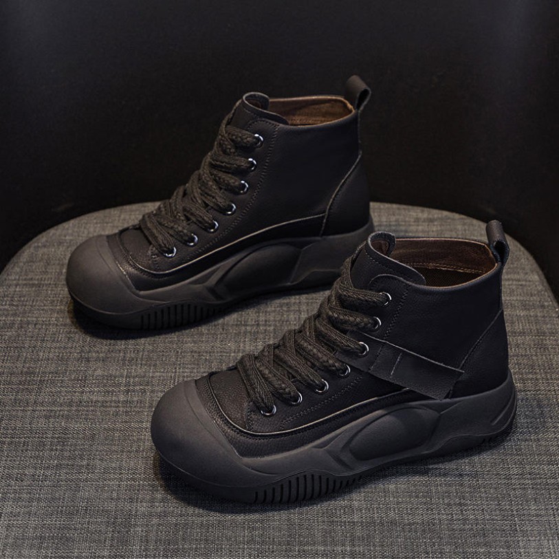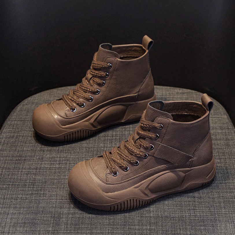 Designed specifically for winter, these shoes feature a premium split leather upper that is durable, windproof, and combines comfort with a stylish look. The thick wedge heel design provides a 5-8 cm height boost while ensuring stable walking. The lace-up closure allows for easy adjustment to fit the foot shape, enhancing comfort. The shaft height covers the ankle, while the rounded toe box provides ample room to reduce forefoot pressure, making them suitable for extended wear. The soft cotton lining offers warmth and protection against cold weather. The durable rubber outsole is slip-resistant, perfect for outdoor adventures and daily commutes. The minimalist solid-color design pairs effortlessly with any outfit, making these boots an ideal choice for winter leisure, work, and outdoor activities.