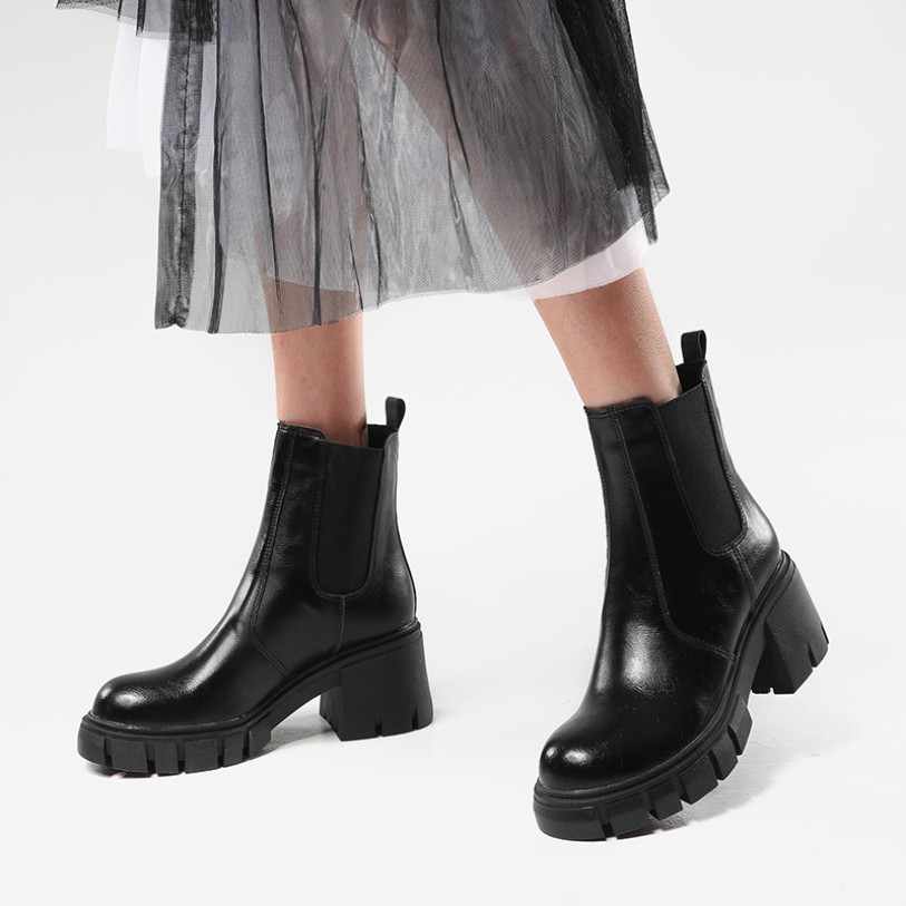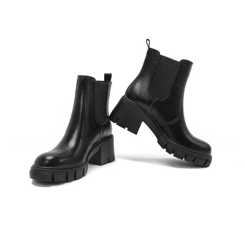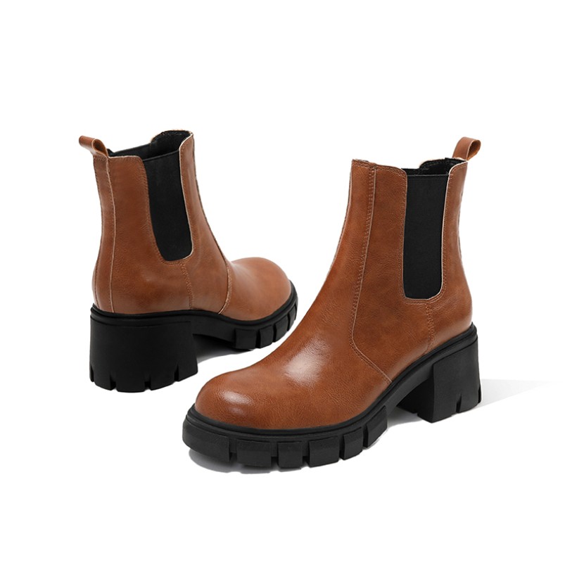 This shoe features a classic Chelsea boot design infused with modern fashion elements, making it suitable for both casual everyday wear and professional settings. The mid-heel design offers moderate height enhancement while ensuring comfortable and stable walking. The boot shaft and ankle height facilitate easy on-and-off wear. The slip-on style conforms to the foot's shape, delivering a clean and sophisticated look. The upper is crafted from premium PU material, offering durability, easy maintenance, and a soft texture that balances aesthetics with practicality. The lining also utilizes PU material, providing soft comfort and a snug fit for enhanced wearability. The rubber outsole delivers slip resistance and wear resistance across various surfaces, while the rounded toe shape allows ample forefoot space for extended comfort. The solid color design ensures versatility, highlighting an elegant demeanor.