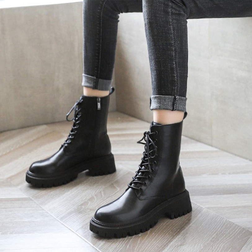 This shoe combines casual and modern design, featuring a knee-high silhouette with a mid-heel platform sole that adds height while ensuring stability. It's perfect for winter daily wear or urban motorcycle-inspired outfits. The upper is crafted from premium silk fabric with a sleek, fashionable finish. Lined with genuine leather and filled with fur, it offers warmth and comfort while remaining soft and breathable even with extended wear. The thick sole provides excellent support and slip resistance, featuring odor-control properties to keep feet dry and comfortable throughout winter. Buckle accents enhance the overall refined look, while the toe-wrap design balances comfort with style.