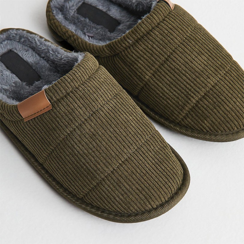This shoe features a quilted corduroy upper design, offering a classic and sturdy look perfect for everyday home wear. The slip-on style ensures easy on-and-off wear, while the closed toe effectively wraps around the feet for enhanced comfort and warmth. The lining and midsole utilize fleece and brushed fleece materials, soft and plush, combined with a memory foam insole to provide excellent cushioning and support. This ensures prolonged wear remains effortlessly comfortable. The lightweight construction facilitates easy movement around the home, while the TPR outsole offers slip resistance and durability for safe walking. The overall design balances comfort, durability, and home aesthetics, making it an ideal choice for men seeking relaxation at home.