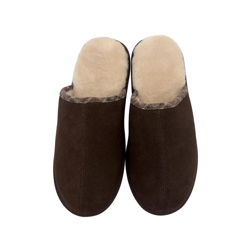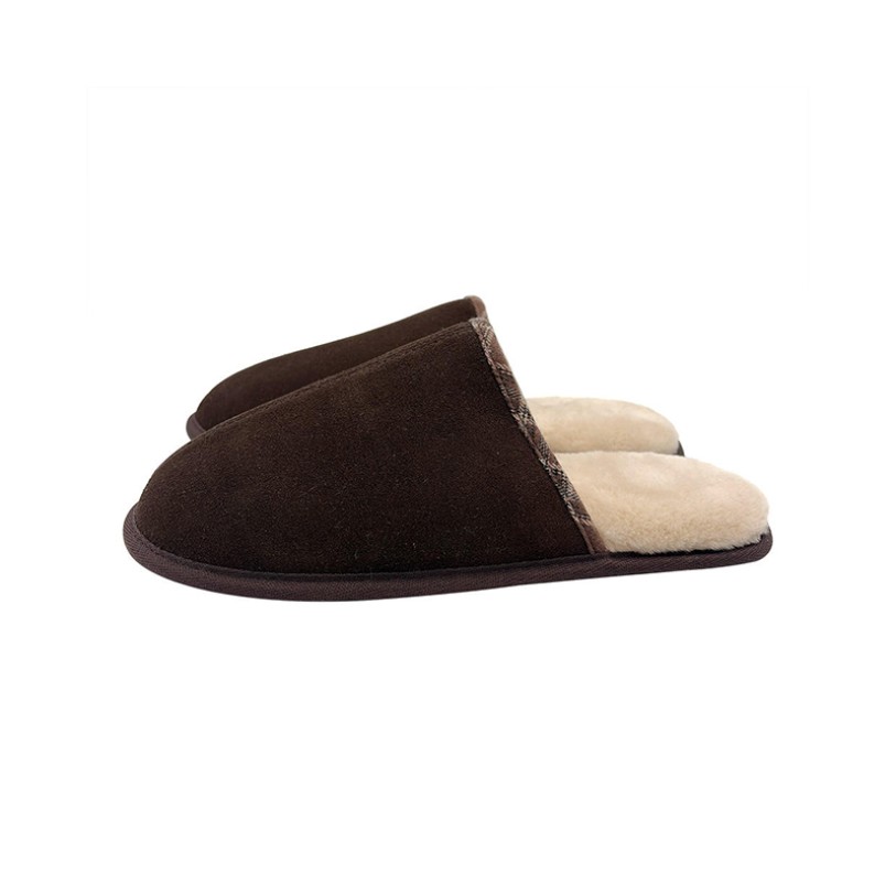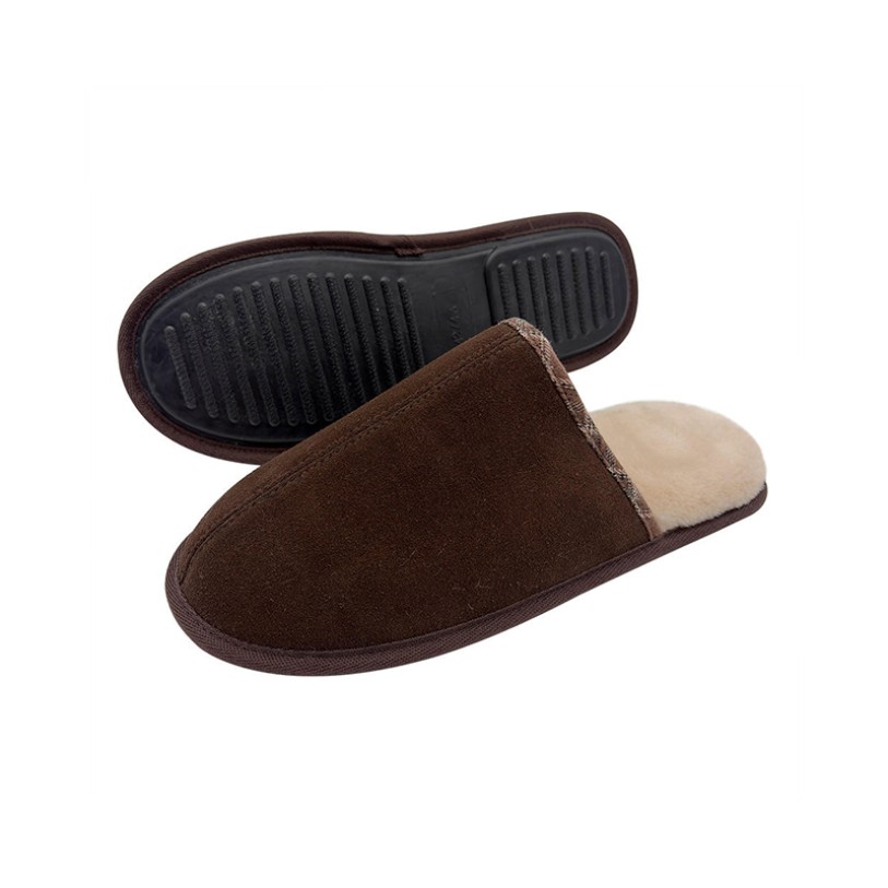 This shoe features a classic closed-toe design with a suede upper that offers a soft, refined texture. The checkered pattern on the surface adds a touch of modern style. The interior lining is crafted from faux fur, paired with an ultra-soft memory foam insole that provides substantial cushioning and supportive comfort while maintaining breathability for all-day wear. The lightweight TPR outsole offers slip resistance and durability, ensuring stable and secure indoor walking. The overall design combines comfort, durability, and eco-conscious principles—it's recyclable and ideal for home relaxation and everyday indoor wear.