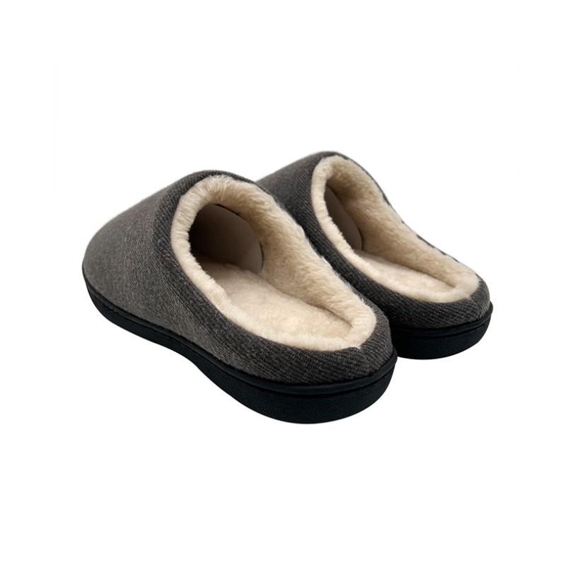 This shoe combines the classic mule design with a clog silhouette for easy slip-on wear while providing stable support. The upper features combed wool fabric that's durable and breathable, while the thick faux fur lining and memory foam midsole deliver warm, cushioned comfort for your feet. The lightweight, abrasion-resistant TPR outsole offers slip resistance even on smooth surfaces, ensuring safety during home or indoor activities. The overall design prioritizes warmth, comfort, slip resistance, and durability, making it the ideal choice for men's winter home slippers.