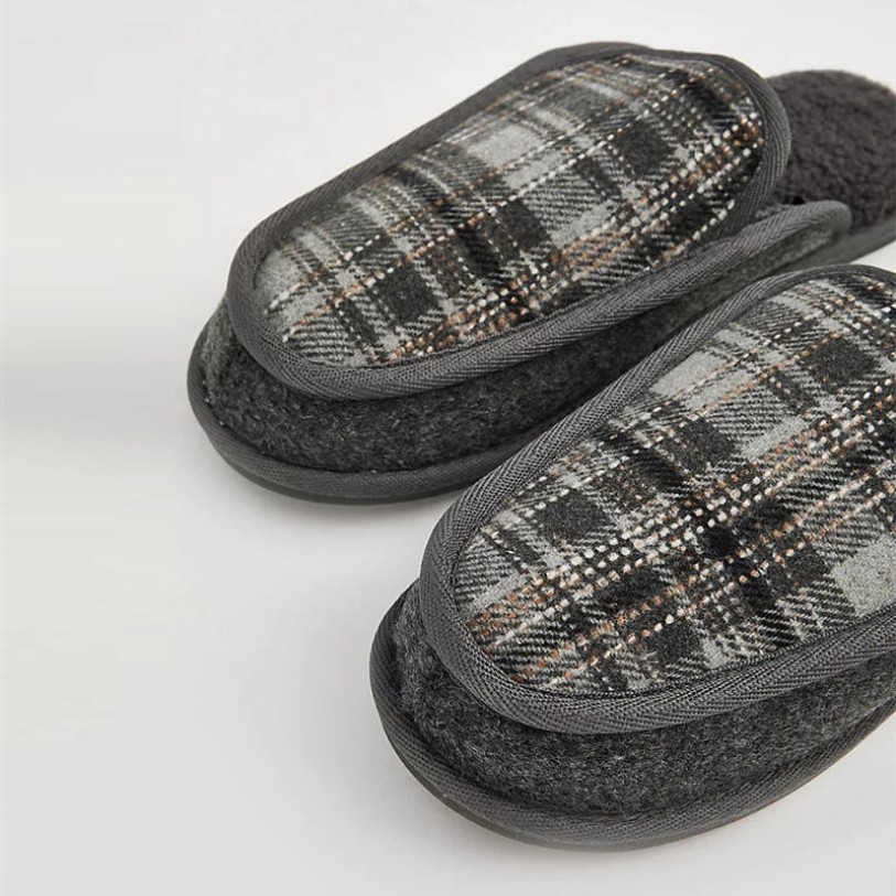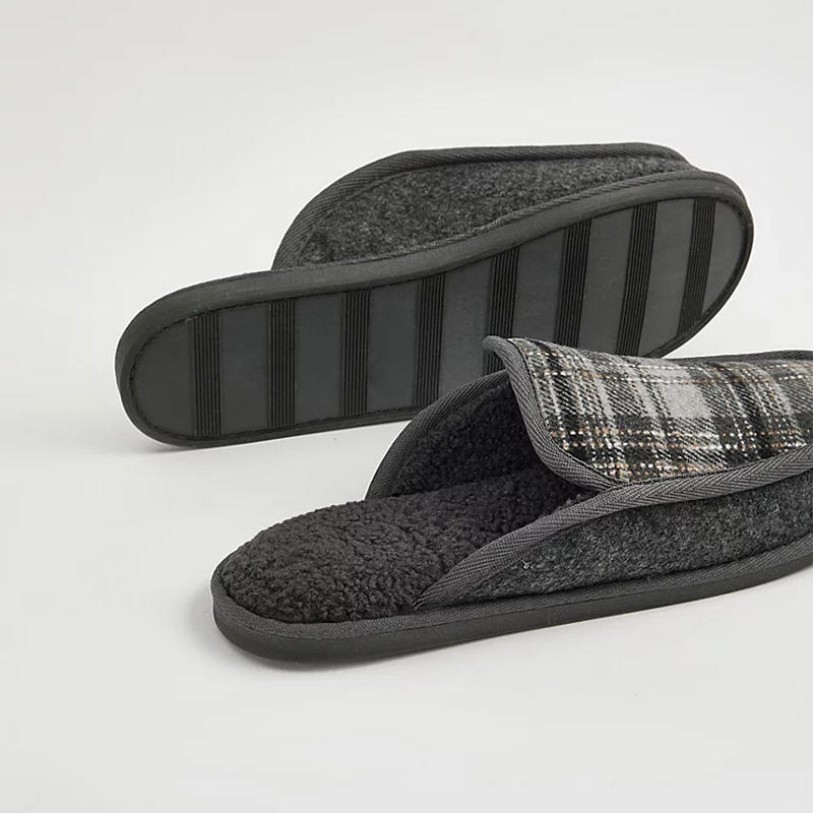 This shoe features a sleek and elegant design with a classic plaid pattern on the upper, blending fashion-forward style with cozy comfort for home wear. The soft wool lining, paired with a fleece-lined midsole and cushioned memory foam, provides warm and supportive comfort for your feet. The lightweight, durable TPR slip-resistant outsole ensures safe and stable indoor walking. The overall shoe construction offers excellent breathability and undergoes a heat treatment process to enhance durability, making it ideal for everyday home wear during fall and winter seasons.