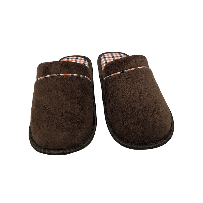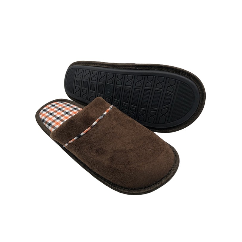 This shoe features a classic mule design for easy slip-on wear, perfect for everyday indoor use. The camel-colored micro suede upper offers a soft, refined texture with a timeless, sophisticated look. Striped detailing and buckle accents at the instep add depth and elegance to the overall design. An integrated memory foam insole effectively cushions foot pressure during walking, enhancing comfort for extended wear. The TPR outsole delivers excellent slip resistance, providing peace of mind when walking on tile or hardwood floors while meeting durability and eco-friendly standards.