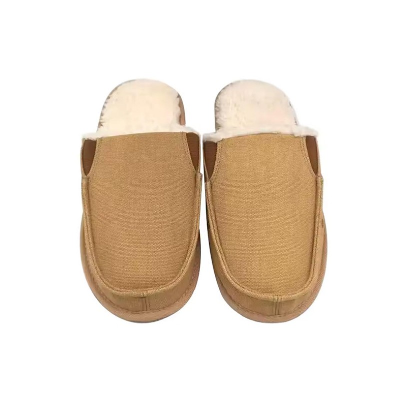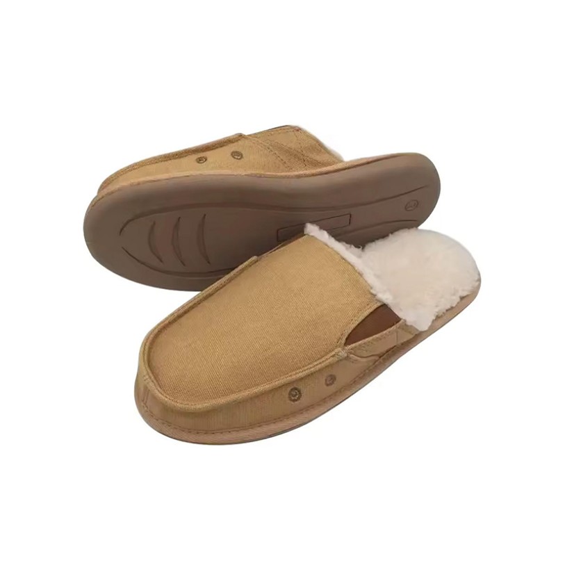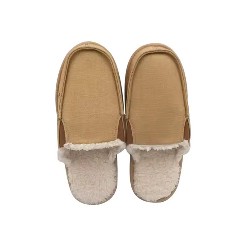 This shoe features a classic moccasin silhouette with a full-back wrap design for a secure, snug fit that ensures confidence with every step. Its clean, minimalist structure makes it perfect for everyday wear at home or casual relaxation. The built-in memory foam insole provides excellent cushioning and rebound, effectively reducing foot pressure during extended wear. The upper is crafted from durable canvas with excellent breathability, paired with a plush fleece lining that feels soft against the skin, keeping feet warm without causing stuffiness. The entire shoe is machine washable for easy daily care. The TPR outsole provides slip resistance and durability, ensuring stable walking for everyday indoor use.