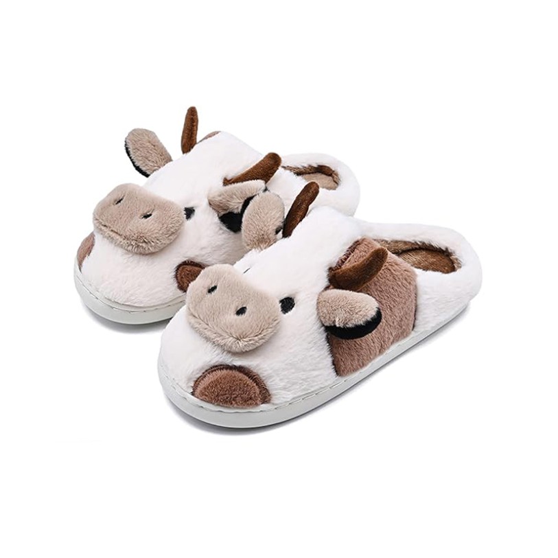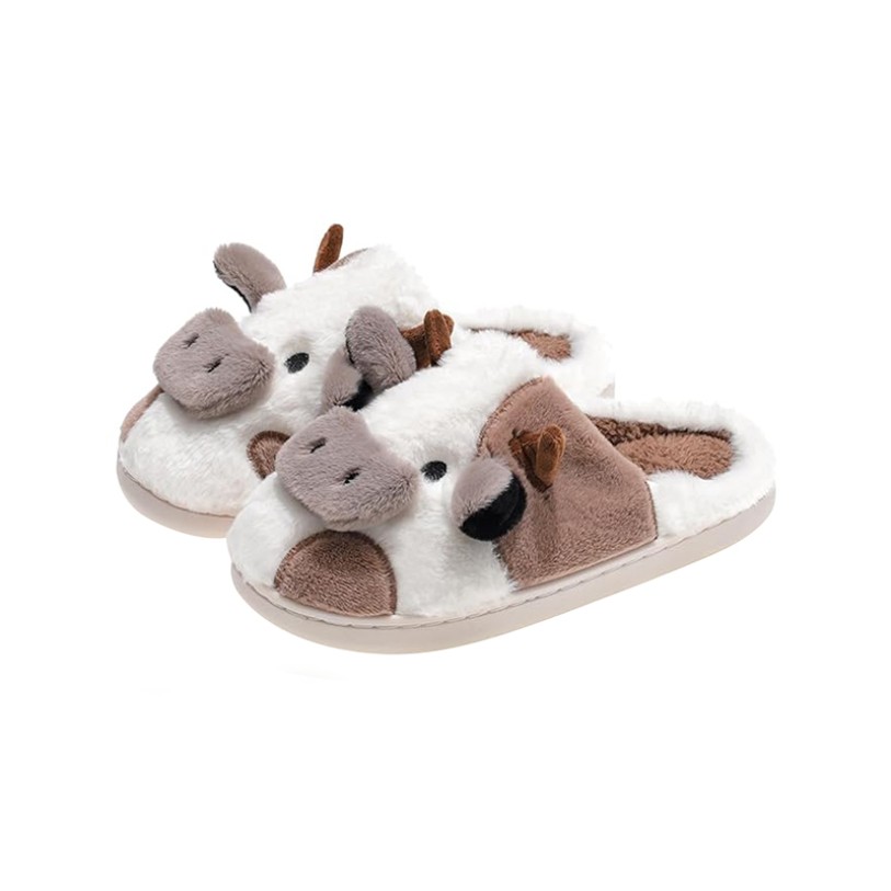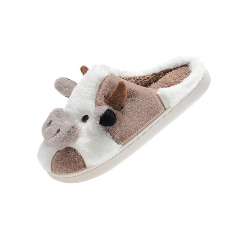 This shoe features an adorable cow design as its standout element, offering a lively and playful appearance that adds a touch of fun to your home life. Both the upper and lining are crafted from ultra-long plush material, delivering a soft, delicate texture that feels plush and substantial. It snugly wraps around your feet for a comfortable, relaxing experience. The lightweight construction ensures effortless movement during daily walks, making it perfect for indoor environments like bedrooms and living rooms. The midsole features soft plush padding for a gentle feel underfoot, alleviating foot fatigue. The PVC outsole offers excellent durability and stability, meeting the demands of everyday home wear.