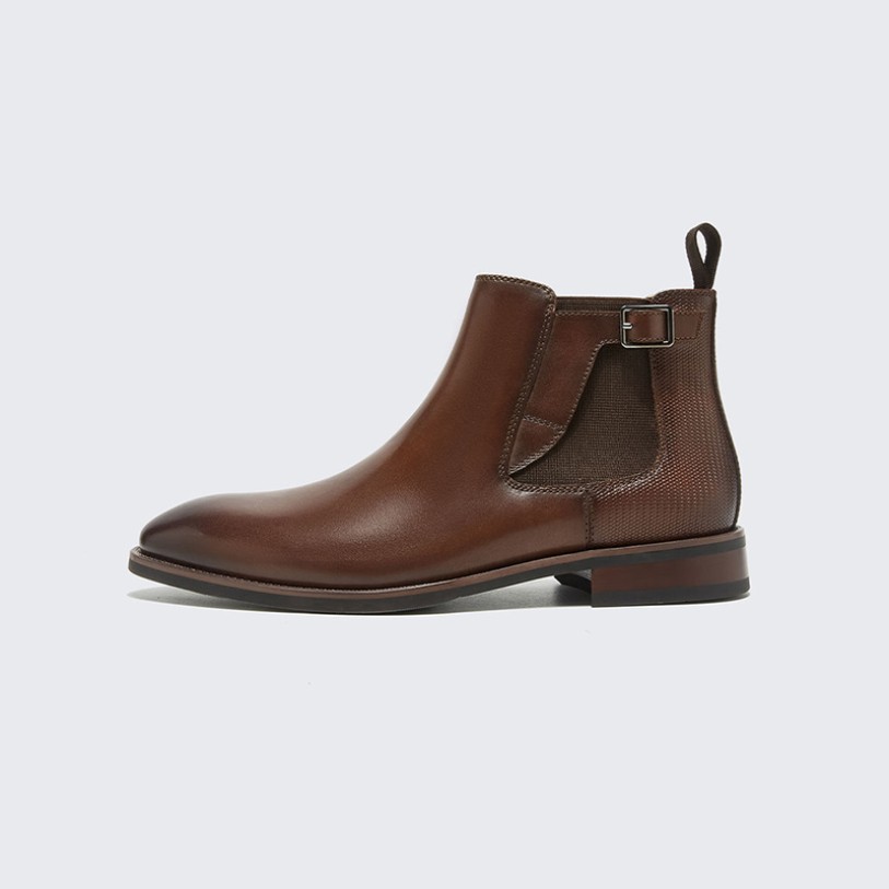 This shoe is designed for office settings and everyday formal occasions. Its ankle-high design ensures flexibility while delivering a sharp, polished appearance. The rounded toe offers a spacious, comfortable fit ideal for extended wear. Crafted from premium genuine leather, the upper combines breathability with lightweight comfort, ensuring ease of movement while embodying contemporary style. The slip-on construction facilitates easy on/off, while the slip-resistant, durable sole adapts to various indoor and urban surfaces, providing stable support. The overall silhouette is simple and elegant, pairing well with formal attire while also suitable for casual wear.