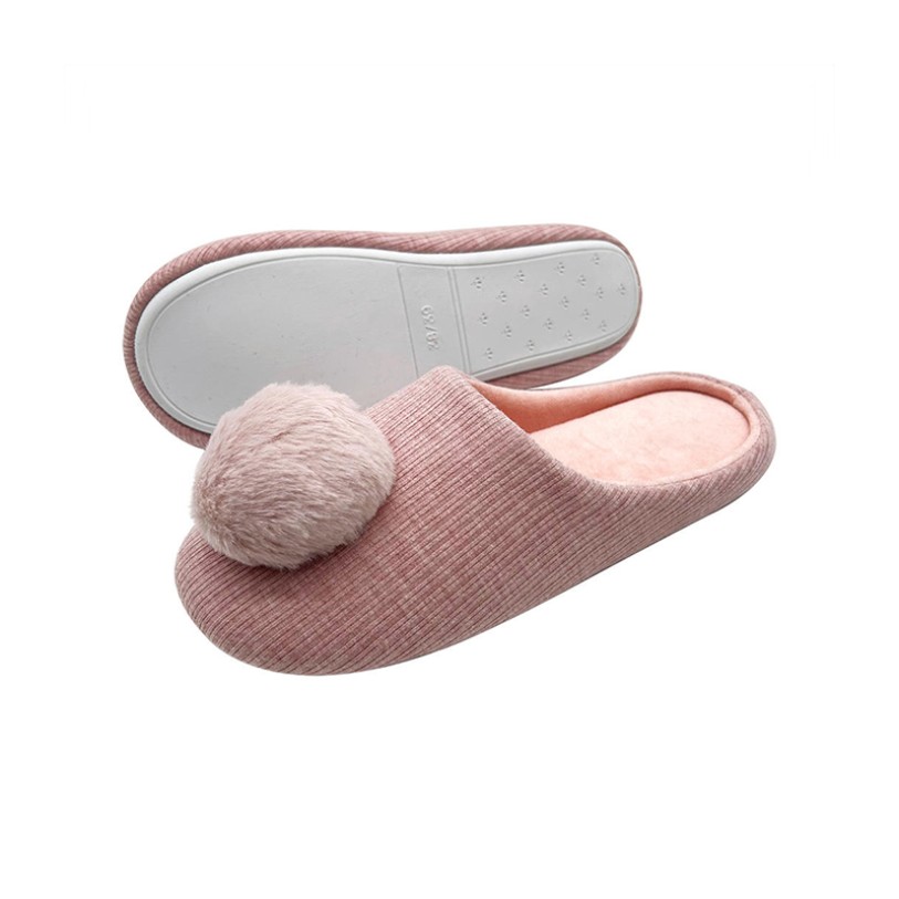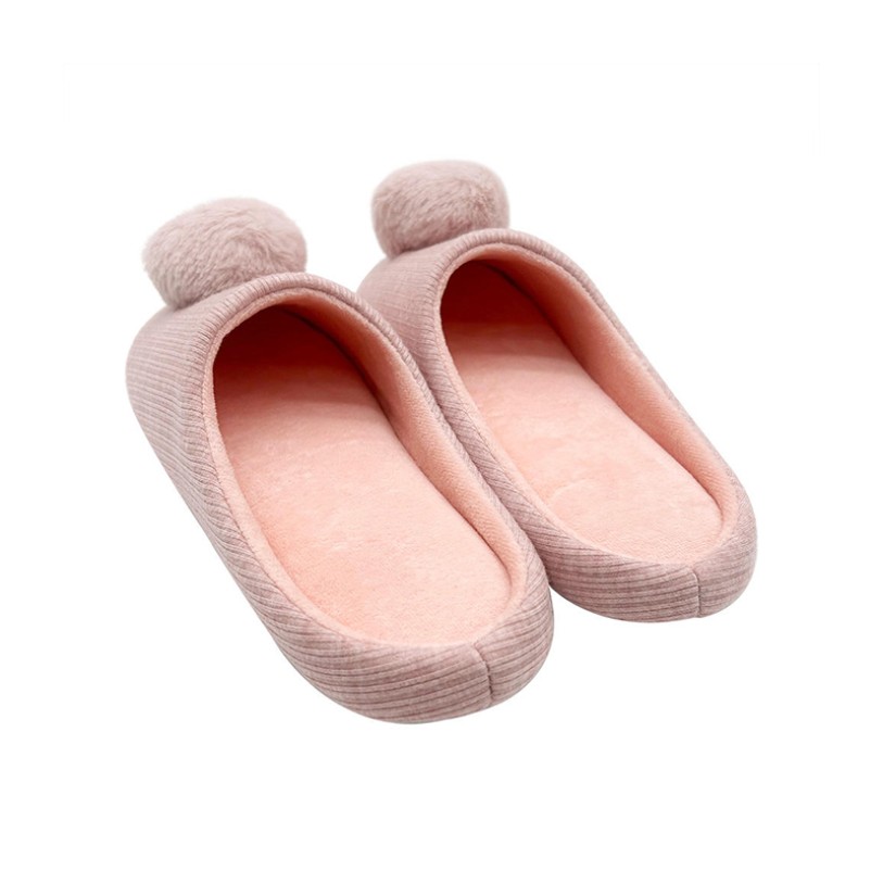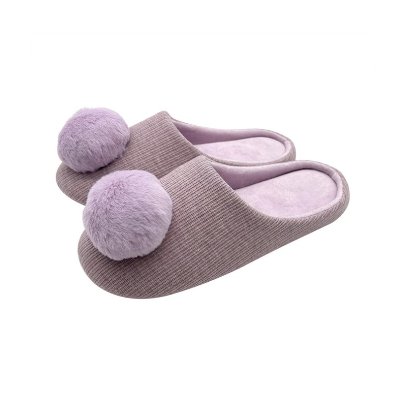 This shoe features a mule design with a closed toe box that snugly wraps around the foot, enhancing warmth and comfort. The upper is adorned with soft pom-poms, adding an elegant and playful touch, making it perfect for everyday home wear. The midsole incorporates a memory foam insole for soft cushioning that reduces foot pressure, ensuring light and comfortable walking. The breathable, lightweight upper pairs with a non-slip TPR outsole to guarantee safe and stable indoor walking.