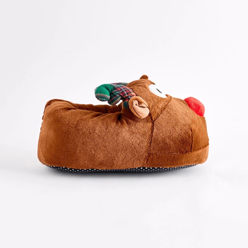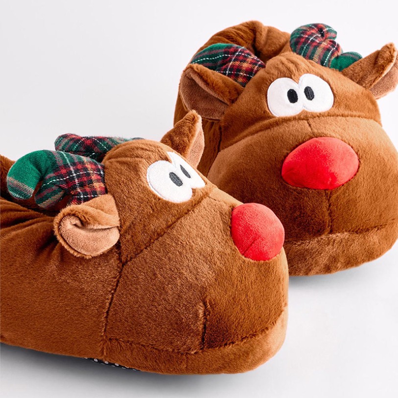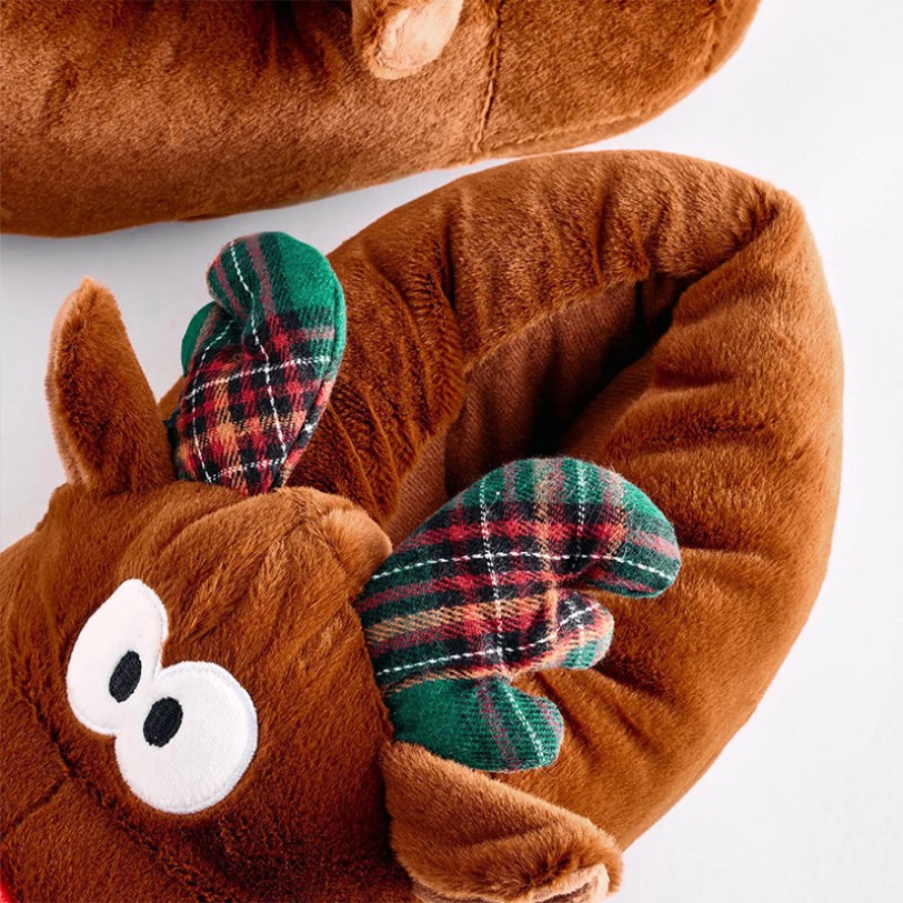 These festive reindeer-inspired slippers are perfect for cozying up at home during the holiday season or as a thoughtful gift. The closed-toe design snugly wraps around your feet for excellent warmth, while the lightweight, soft upper ensures all-day comfort. Ultra-soft materials throughout the upper, lining, and midsole provide cushioning and supportive comfort, keeping your feet relaxed even during extended wear. The outsole features a non-slip dotted textile pattern for enhanced traction, ensuring stability and safety during indoor walking. The overall design combines playfulness, comfort, and festive charm, making it an ideal choice for winter lounging and Christmas celebrations.